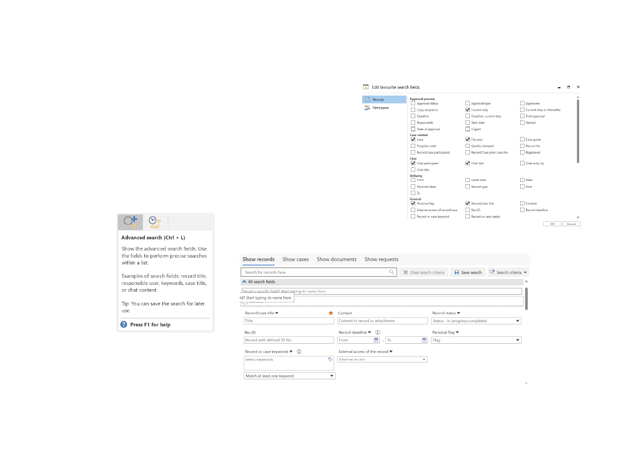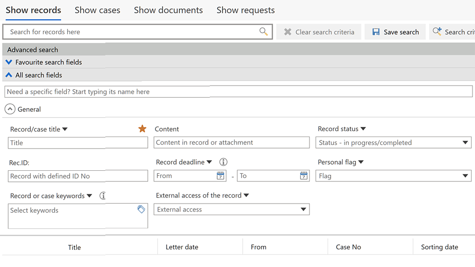 Avanceret søgning giver brugerne mulighed for at udføre præcise, kriteriebaserede søgninger på tværs af store datamængder, hvilket understøtter komplekse undersøgelser, anmeldelser og overholdelsesarbejde.