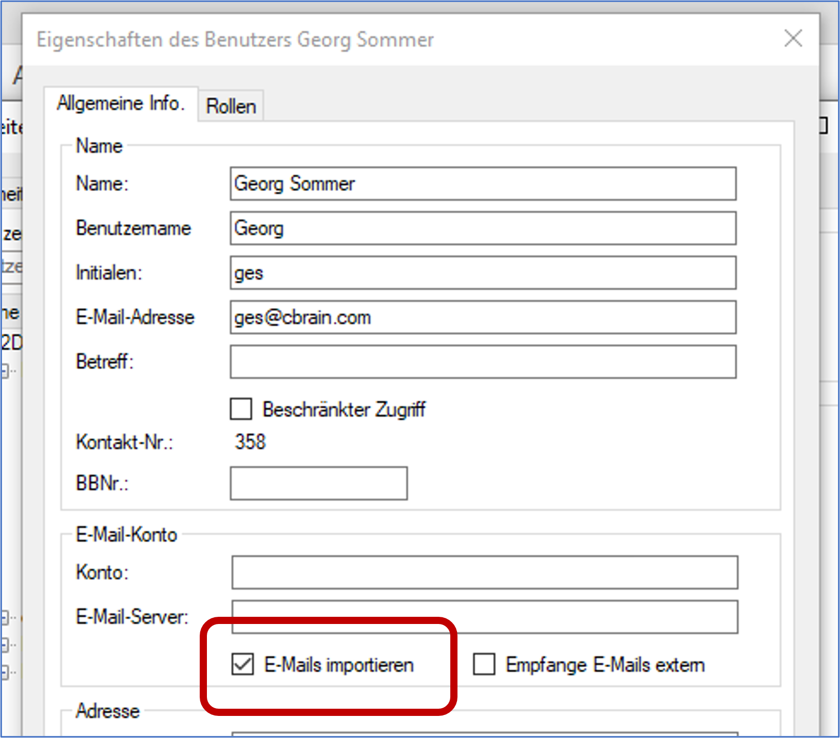8. Benutzereinstellung zum Import aller E-Mails nach F2 (durch Administrator)