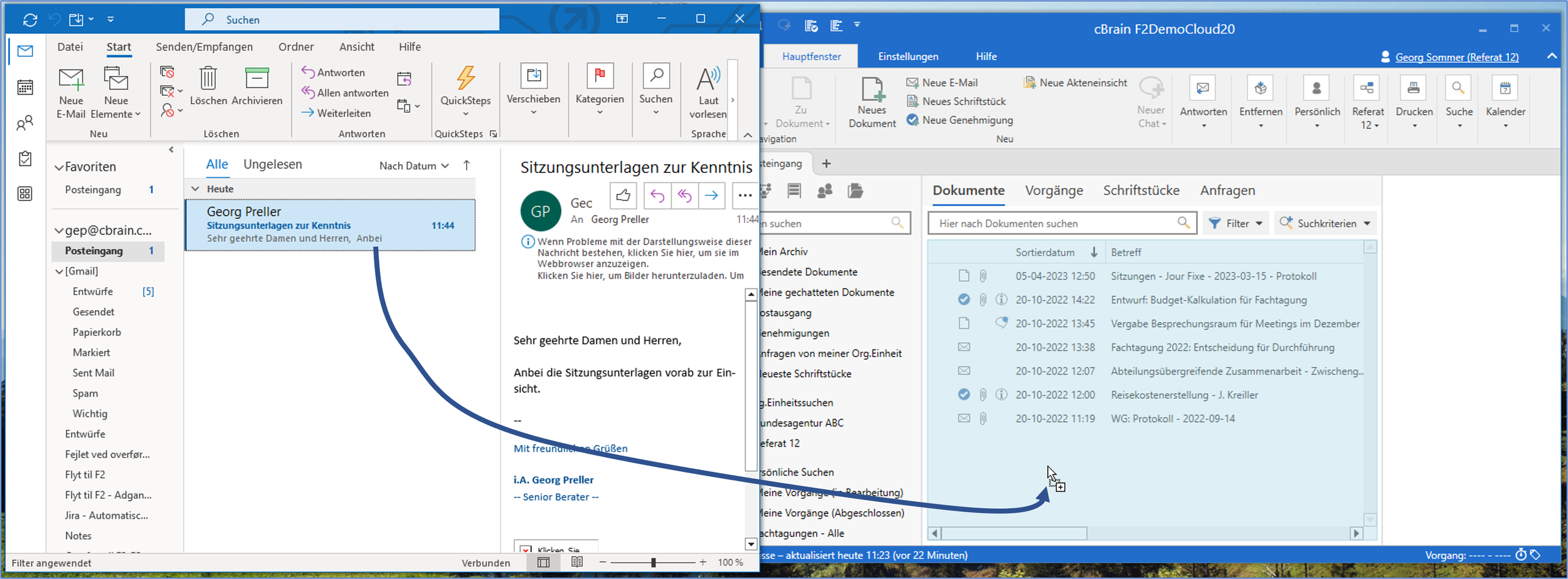 Das waren acht Möglichkeiten, wie Sie E-Mails von Outlook nach F2 importieren können. Wenn Sie Fragen oder Anmerkungen haben, wenden Sie sich gern an Ihre Ansprechpartner*innen von cBrain.