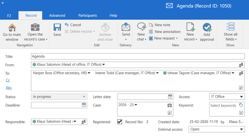 Formale Klarheit. Verwalte die offizielle Korrespondenz auf strukturierte Weise.